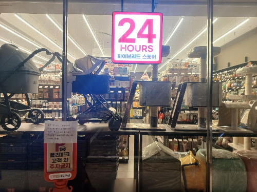 여기는 24시간 운영합니다. 일단 매장이 넓고 반려견과 반려묘가 가지고 놀 수 있는 장난감과 간식