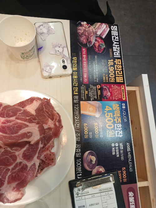 명륜 진사 갈비가 무한 리필로 변하면서 1인당 18,900원이었습니다. 맥주병은 5000원이었구요...