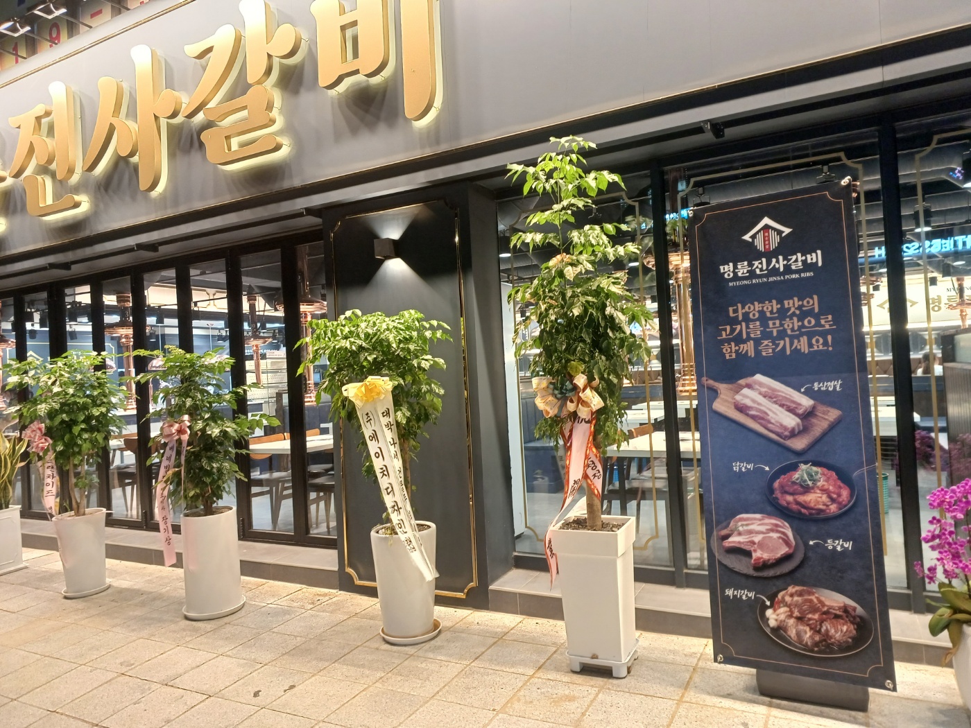 대로변에 크게 명륜진사 갈비 점이 들어왔길래 넘 반가왔어요. 예전에 양념 돼지 갈비를 저렴한 가격으로 괜찮게 먹은 추억이 있어서 늦게 학원 다녀온 딸아이 데리고 남편이랑 셋이서 손 잡구 갔어여. ㅎ ㅎ